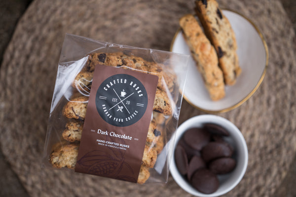 Loaded with dark chocolate and pecans – bold, nutty, and deeply satisfying. A decadent twist on the classic rusk.
